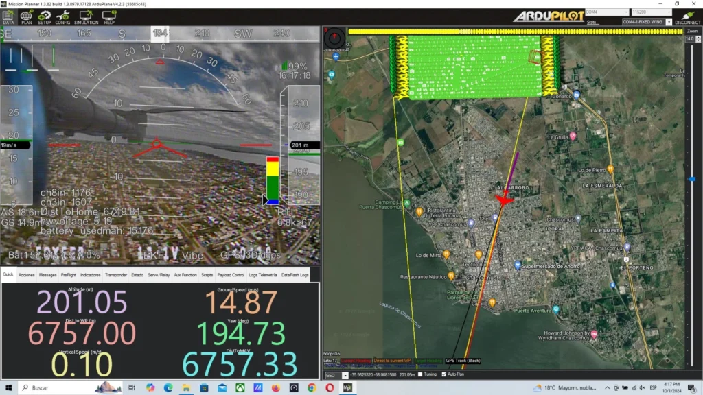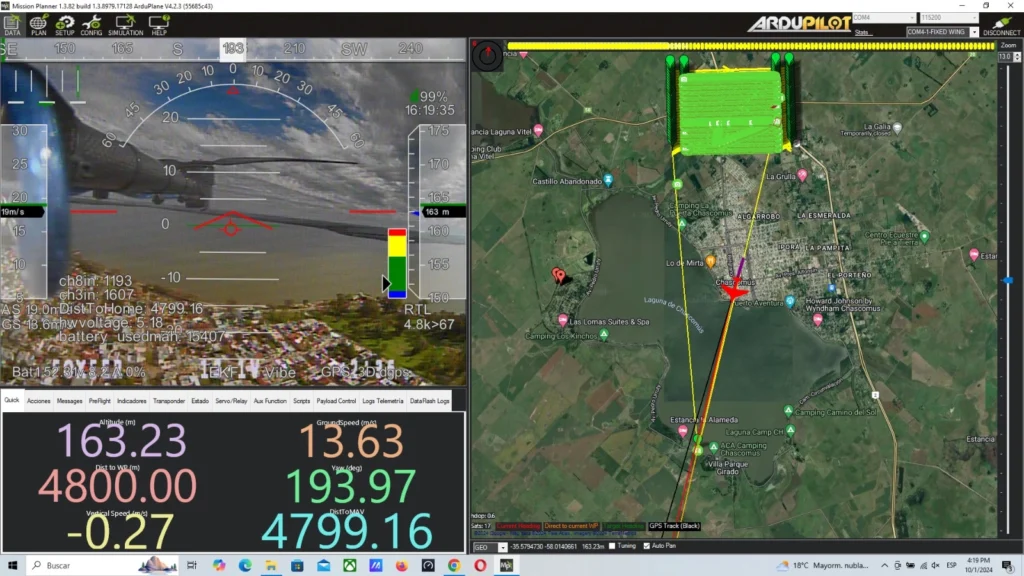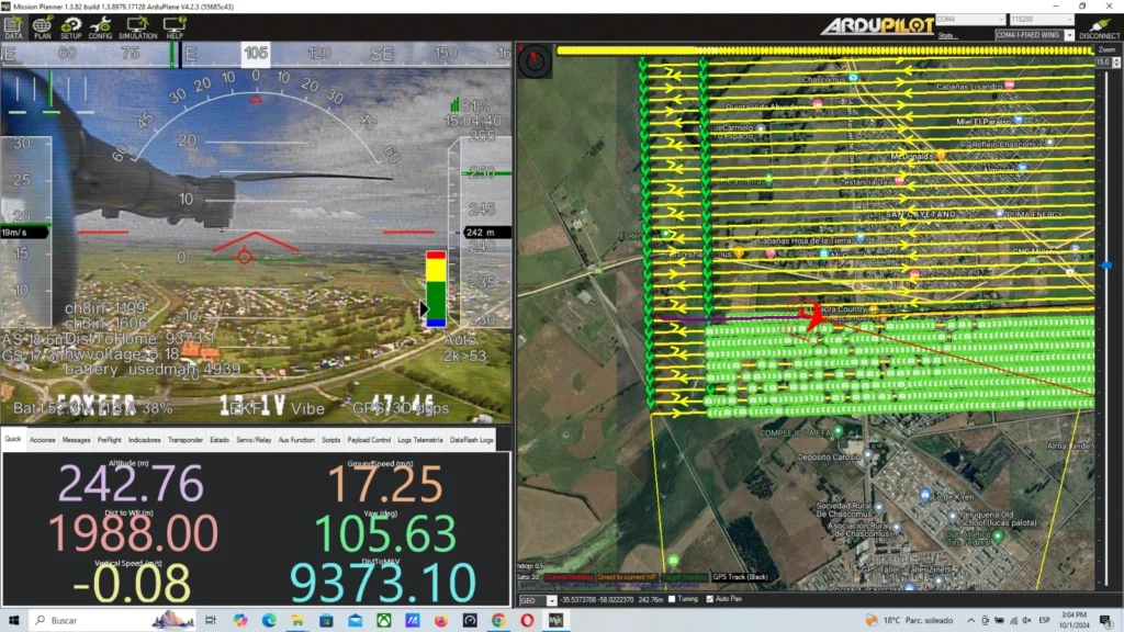 Los drones con los que contamos son del tipo quadplane (hibridos entre drone tardicional y ala fija), son de gran autonomía y nos permite mapear 1000 has por día con una resolución de 3cm/pixel dando una precisión planimetrica del orden de los 6 cm y altimétrica del orden de los 10cm.